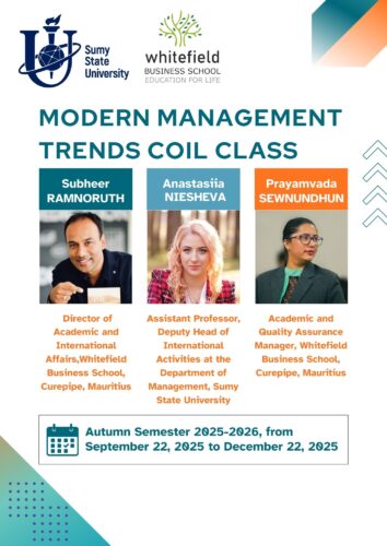 Coordinated by PhD student of the Department of Management named after O. Balatskyi, Anastasiia Niesheva, Director of Academic and International Affairs at Whitfield Business School, Subheer Ramnoruth, and Academic and Quality Assurance Manager at Whitfield Business School, Prayamvada Sewnundhun, we have embarked on an exciting educational journey. Ahead of us lie many more engaging lectures and discussions!