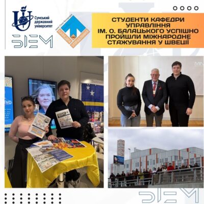 As part of the Erasmus+ academic mobility programme, students of the Department of Management at Sumy State University, Eduard Bohdan and Daria Zavalna, participated in an internship in the Jönköping Municipality (Sweden) from March 15 to 21.