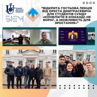 On 16 December, O.Balatskyi Department of Management held an open guest lecture “Conflicts in a Team: Not an Enemy, but an Opportunity for Growth”, organised for students and staff of Sumy State University in a hybrid format that combined online participation with in-person engagement on campus.