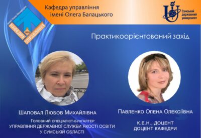 25.09.2025 р. в рамках лекційного заняття з дисципліни «Цифровий розвиток та електронна демократія» практичним досвідом застосування цифрових технологій у професійній діяльності зі здобувачами групи ДС.мз – 51 поділилася Шаповал Любов Михайлівна – головний спеціаліст-бухгалтер Управління державної служби якості освіти у Сумській області.