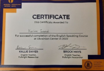 07 December 2022 Improving the language qualification of the senior lecturer of the Department of Management