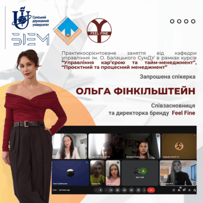 10.10.25 у рамках курсів «Управління кар’єрою та тайм-менеджмент», «Проєктний та процесний менеджмент”, «Теорія управління та адміністрування» студенти ННІ БіЕМ зустрілися із запрошеною спікеркою – Ольгою Фінкільштейн, співзасновницею та директоркою бренду Feel Fine.