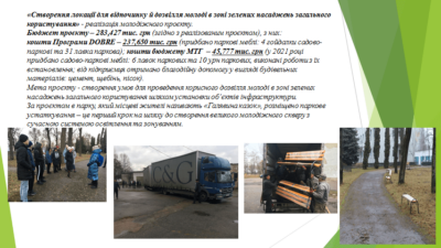Зокрема, громада активно співпрацює в реалізації програми USAID «DOBRE» в напряму децентралізації, сталого розвитку території, гендерної рівності, благоустрою, поводження з твердими побутовими відходами, підтримки місцевого підприємництва і туризму.
