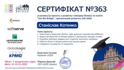 Викладачі кафедри управління Котенко Станіслав Ігорович та Нєшева Анастасія Дмитрівна приняли участь у серії воркшопів «Uni-Biz Bridge» 21-22 листопада.
